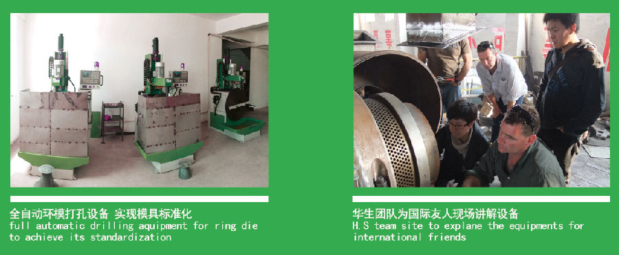 華生機械堅持采用4Cr13(俗稱不銹鋼)環(huán)模,通過科學布孔,改進型抱箍裝配,
